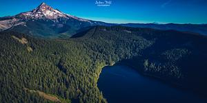 Hovering Over Bull Run Lake Viewing Mt Hood in the Summer of 2022