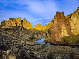 This photo is not incredibly touched up. The colors here are breathtaking, and the serenity of all is immediately apparent. The Crooked River meanders through the rocks as the climbers prepare their gear.